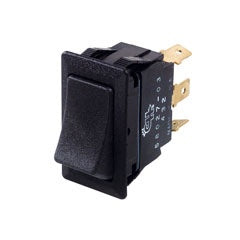 Extremely robust rocker switch featuring push-on terminals and weather resistant black plastic housing. Panel push fit.
